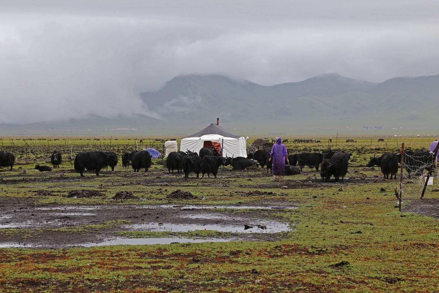 In a rich cyclical set of interrelations, yaks, humans, and landscape have evolved in dialogue with one another for centuries. The Zoige plateau is a 27,000 sq km wetland area sitting at the head of China’s two largest rivers, the Yellow and Yangtze. It is characterised by peat bogs up to 10 metres thick, making it a huge carbon store and a site of distinctive biodiversity. This is a landscape sculpted by yaks, which have been herded by Indigenous communities here for thousands of years.
