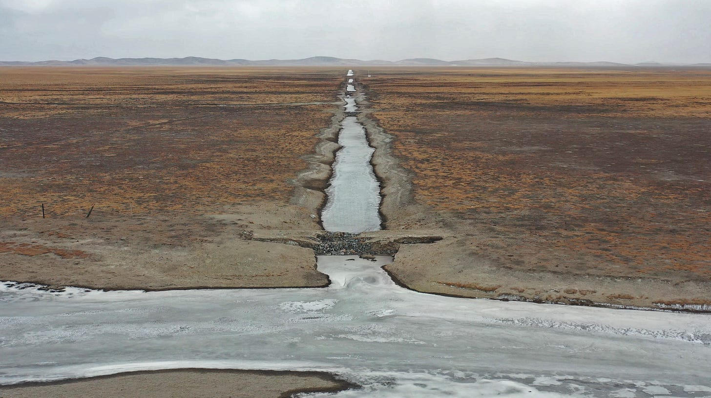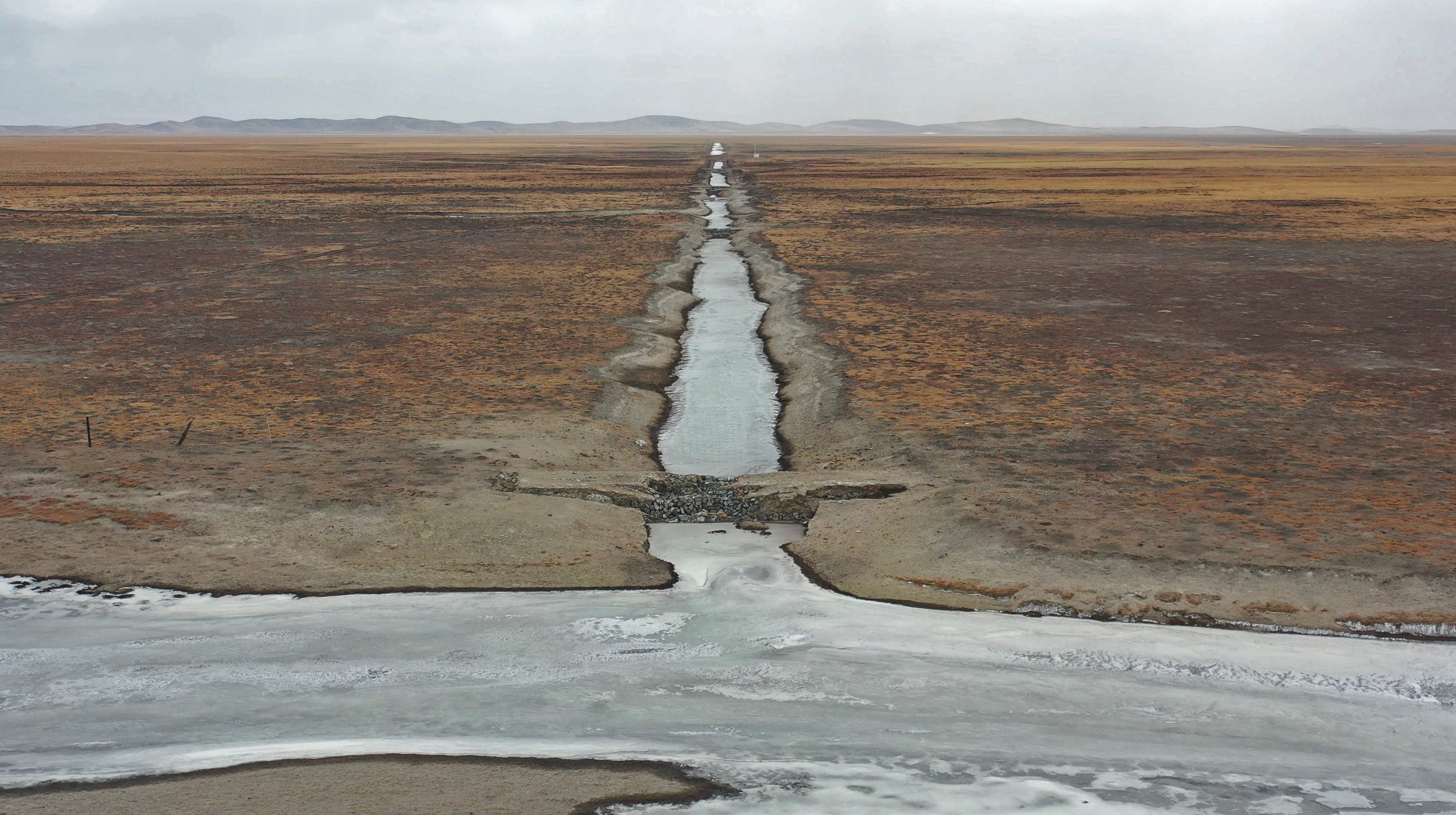 Ditches in northern Zoige Marsh, February 2024, Drone footage, Mingxin Li