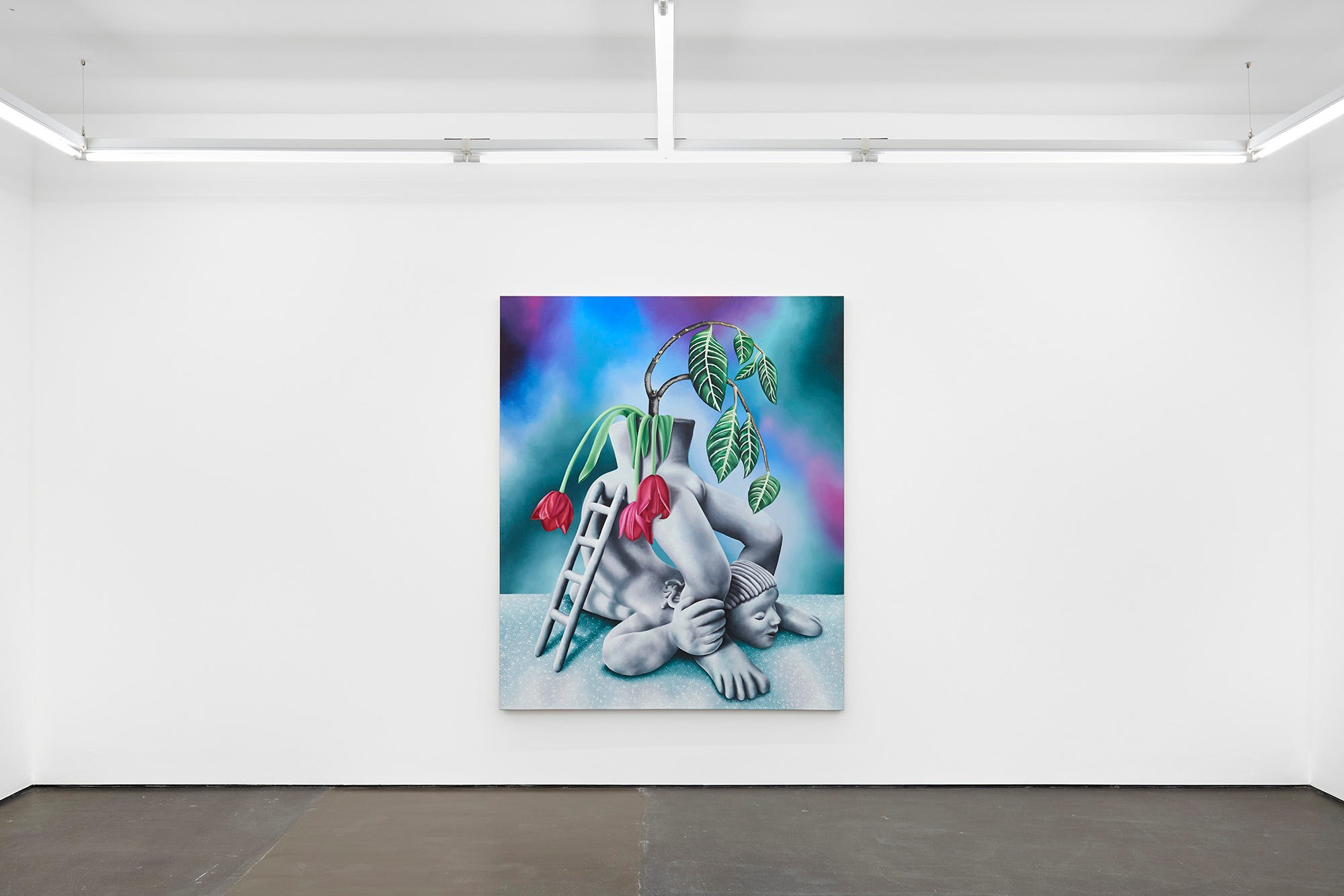 Jane Hayes Greenwood, The Contortionist, 2023. Oil on linen, 180 x 160cm. Installation view, Jane Hayes Greenwood: A Little History, Castor Gallery, 22 June - 29 July 2023.